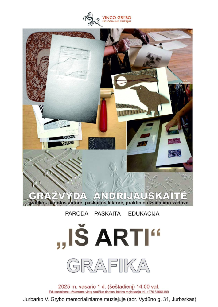 Po parodos pristatymo ir paskaitos dailininkė Gražvyda Andrijauskaitė ves meninės grafikos praktinę edukaciją, kurios metu bus išbandoma reljefinė spauda