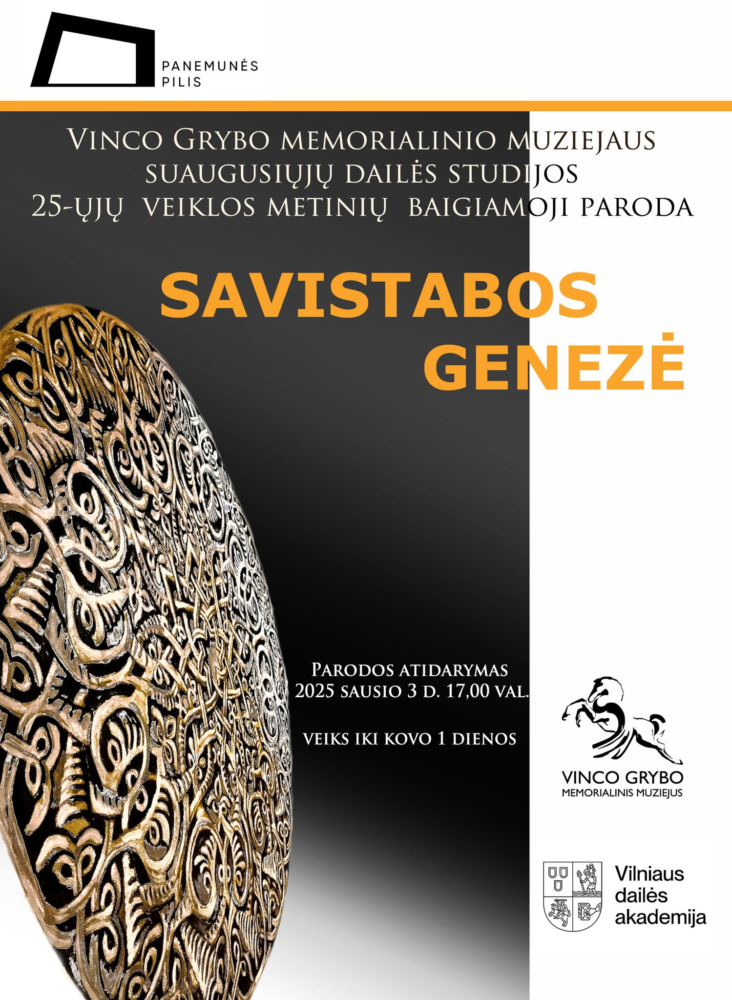VDA Panemunės pilyje penktadienį buvo atidaryta Vinco Grybo memorialinio muziejaus Suaugusiųjų dailės studijos paroda „Savistabos genezė”. Parodoje dalyvauja 100 proc. studijos narių – Vilmanta Šulskienė, Ramutė Bakanienė, Romarika Pikelienė, Laima Mickūnienė, Alma Busch, Odeta Kniečiūnienė, Jurgita Davidavičienė, Eglė Blažiūnaitė, Gabija Viduolytė, Onutė Siaurusaitienė, Irmina Ambrozevičienė, Jolanta Tamošaitienė, Birutė Mockienė, Vilija Dovydaitienė, Rasa Grybaitė, Daina Tolpežnikienė, Audronė Martinaitienė, Romutė Gervylienė, Daiva Mockienė, Sandra Mielkaitytė.